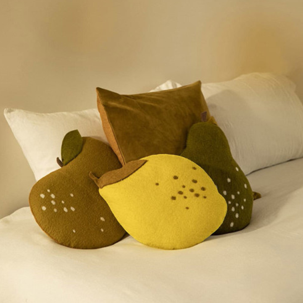 The lemon cushion is the most citrusy of Muskhane's fruity felt cushions. With its Sulfur Flower colour, bring a vitamin-enriched theme to your home and brighten the room no matter the season. Crafted artisanally in Kathmandu, it’s made of felted sheep’s wool and a kapok stuffing for still more sweetness and softness.