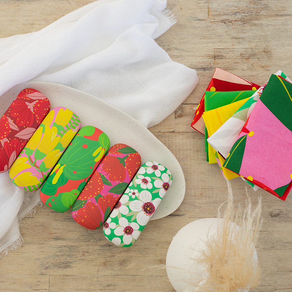 100% NZ Glasses Case Bright Botanical Kawakawa