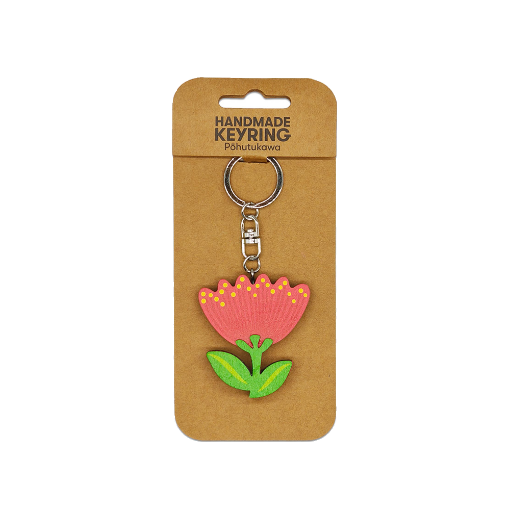 Crafted from natural wood and bursting with Kiwi charm, this handmade keyring features a distinctive Pōhutukawa design. It's the perfect pocket-sized keepsake or gift from Aotearoa.