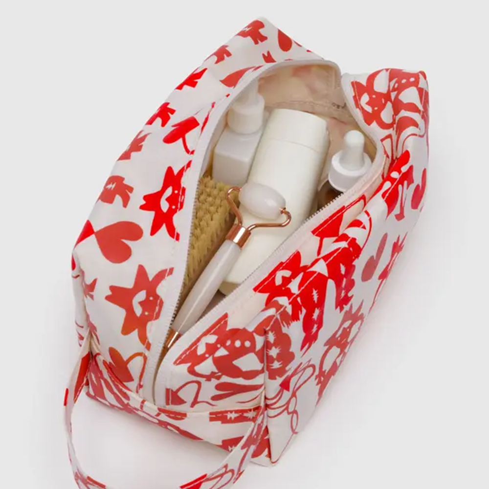 Peace of mind comes from knowing where you packed your toothbrush! This pouch features a zip top closure, a loop for carrying or hanging, and three interior pockets. Made from recycled heavyweight nylon.