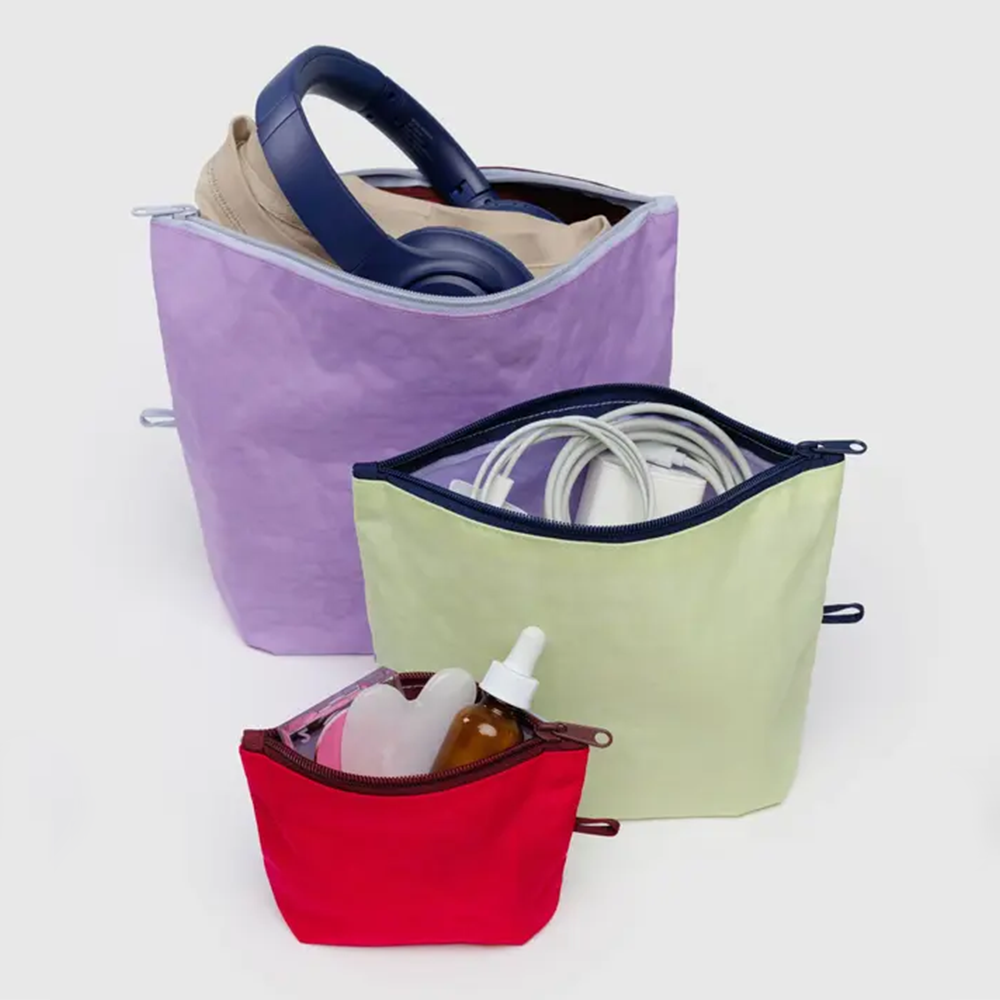 Baggu's Go Pouch's make it easy to keep your bag neatly packed and organized. They expand to hold your essentials and lay flat when not in use. Made from recycled heavyweight nylon.