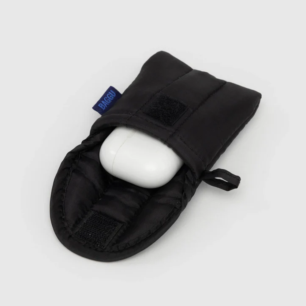 A quilted home for your earbuds, lightly padded to protect them from scratches and dirt.