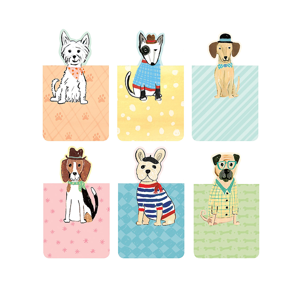 Heather Strianese has illustrated six undeniably adorable pups-from a bull terrier in a sweater to a bespectacled pug-each die-cut onto a magnetic clip which securely saves your place in any book or magazine.