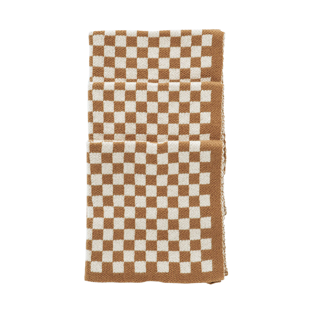 Bianca Lorenne's Chekka knitted washcloths come in a set of 3 and feature a check design in a mix of clay tones. Perfect for using in the kitchen, as an alternative to a face cloth or for babies.