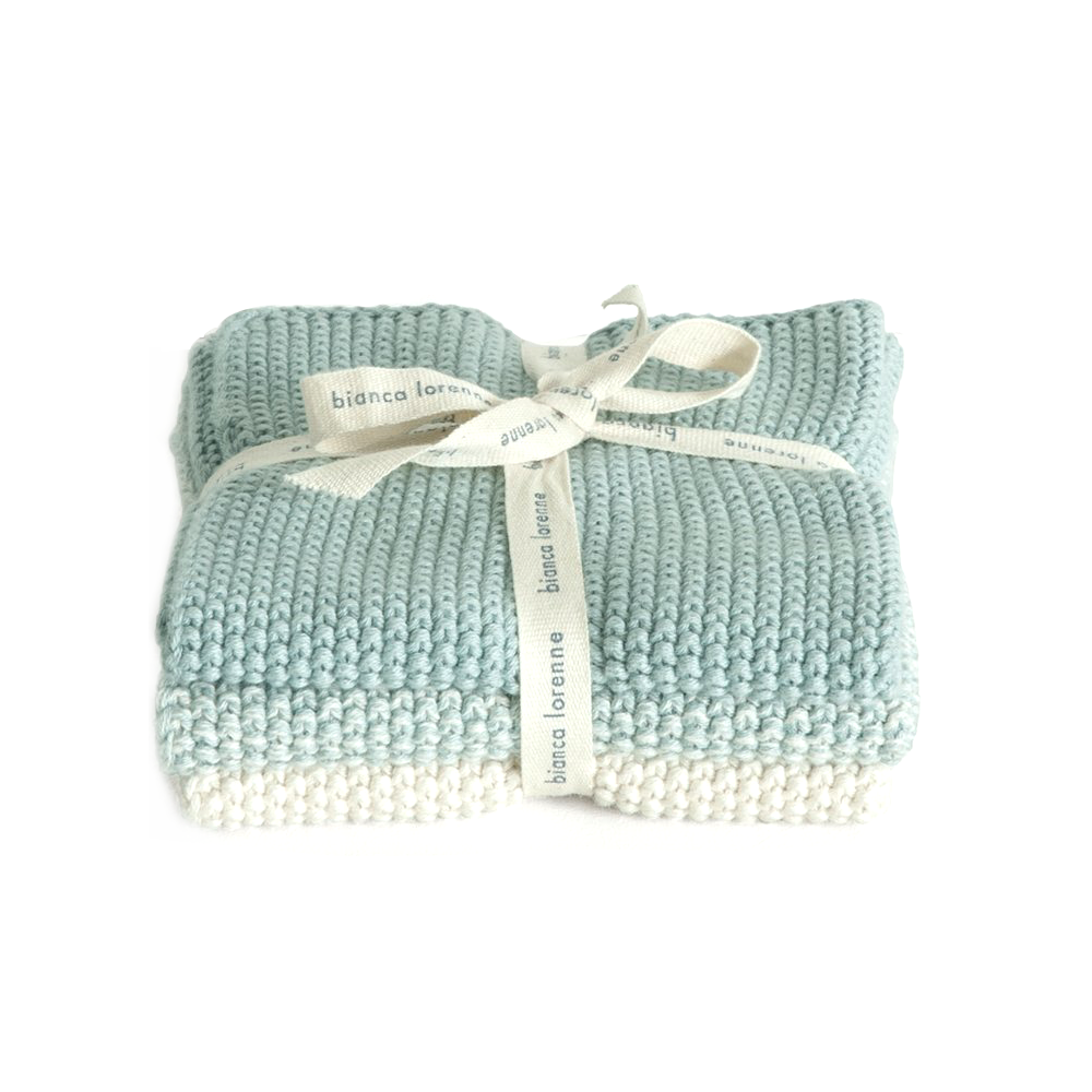Bianca Lorenne's Lavette knitted washcloths come in a set of 3 and feature a mix of duck egg blue tones.