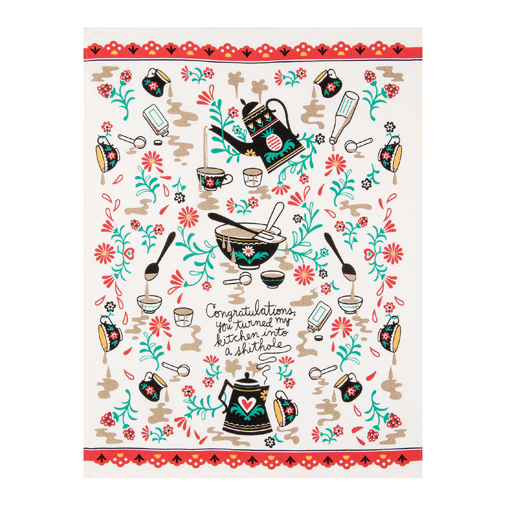 Screen-printed with water-based inks, super-absorbent, super-soft and made with 100% cotton.