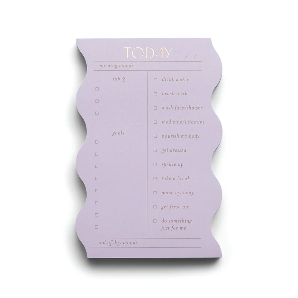 This wavy notepad is dedicated to tracking daily goals, self-care tasks, priorities, and mood.