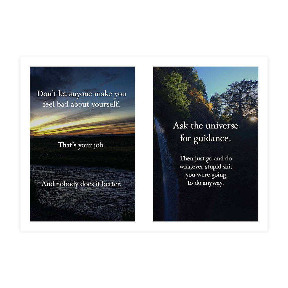 Pairing lovely vacation photos taken by the author himself with sayings that are amusingly self-critical, encouraging, disillusioned, or all three at once, Tarnowski points to feelings commonly unacknowledged or hidden and spotlights them with humor, wit, and empathy. You can do it! But you probably won’t. But also: Be kind to yourself, asshole. Transforming and re-envisioning the material for print while adding tons of new work, this is the funny-because-it’s-true, sneaky self-help gift book for anyone who isn’t happy all the time and doesn’t feel seen in the whole “positive mental attitude” culture. Unfollow your dreams!