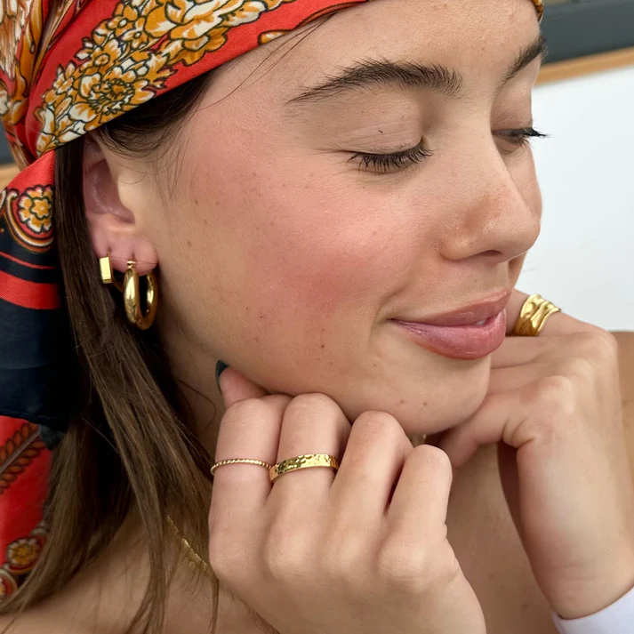 With a polished wave-like design and sculptural finish, this ring brings edge and elegance in equal parts. Designed to move with your lifestyle — from workouts to workdays — it's a piece that holds its own in a stack or stands strong solo.
