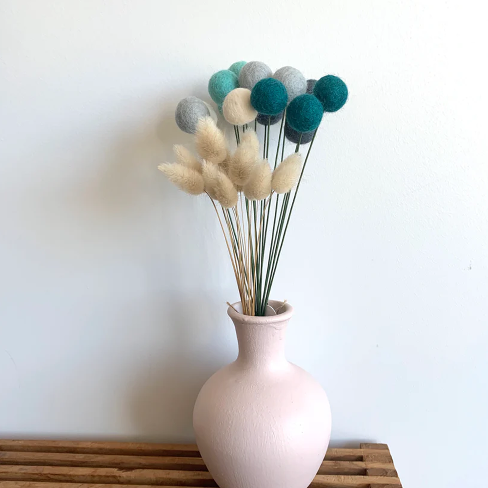 These cute felt pom pom flowers come in a range of colours are are lovely for adding a pop of colour and texture to a vase.