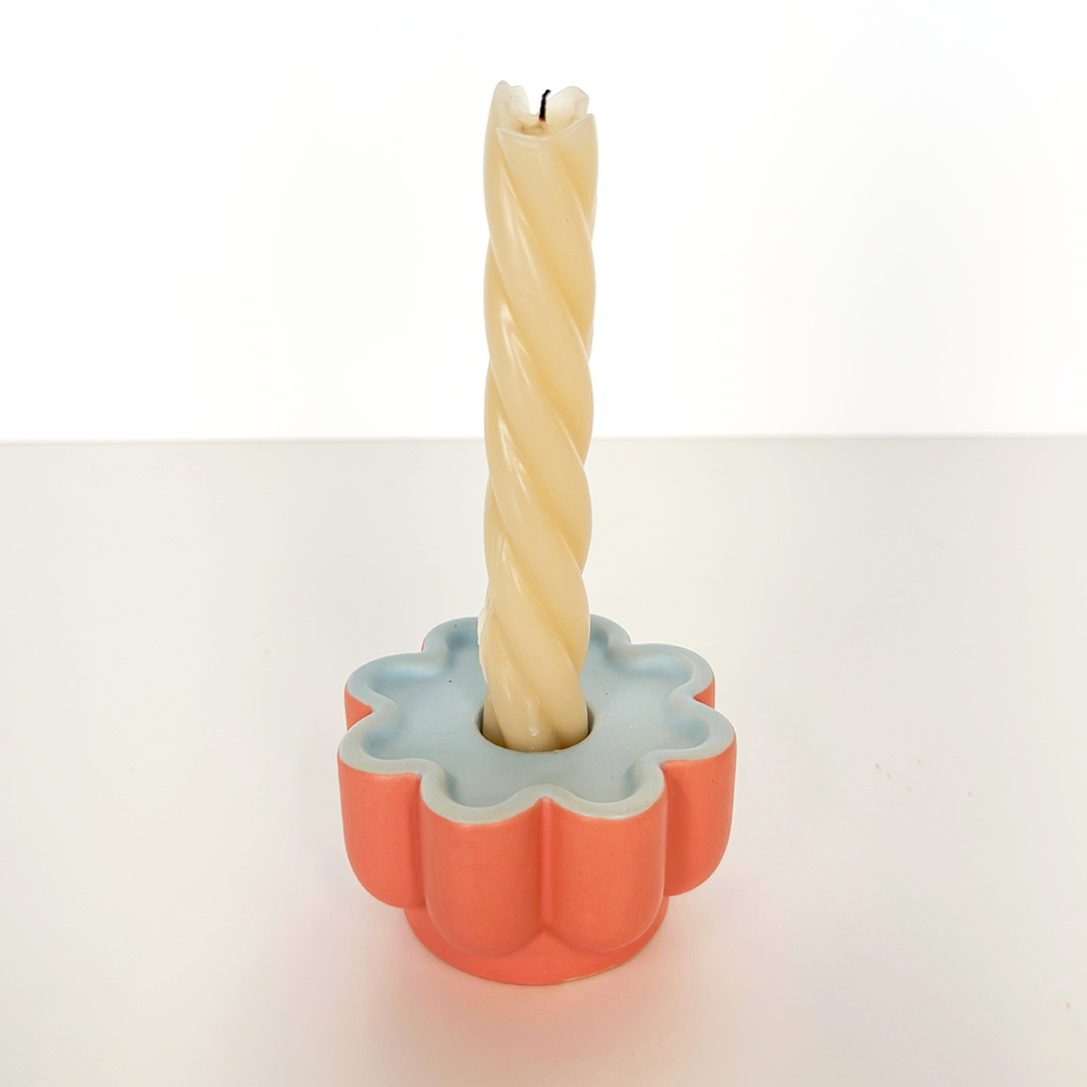 Groovy Flower Candle Holder Blue and Pink