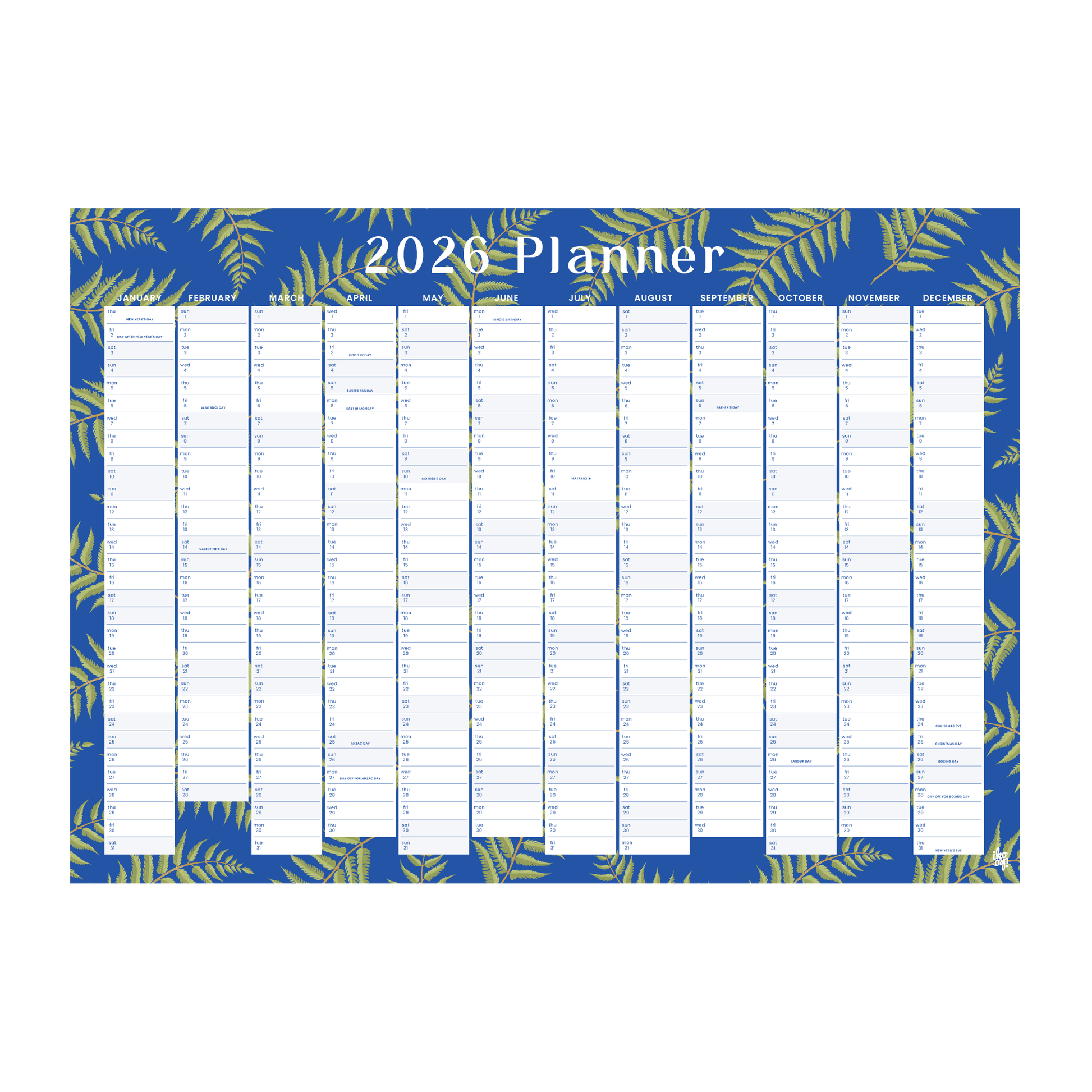 Get organised with our range of 2026 Wall Planners. Includes key holidays with space to write a short memo for each day of the year.