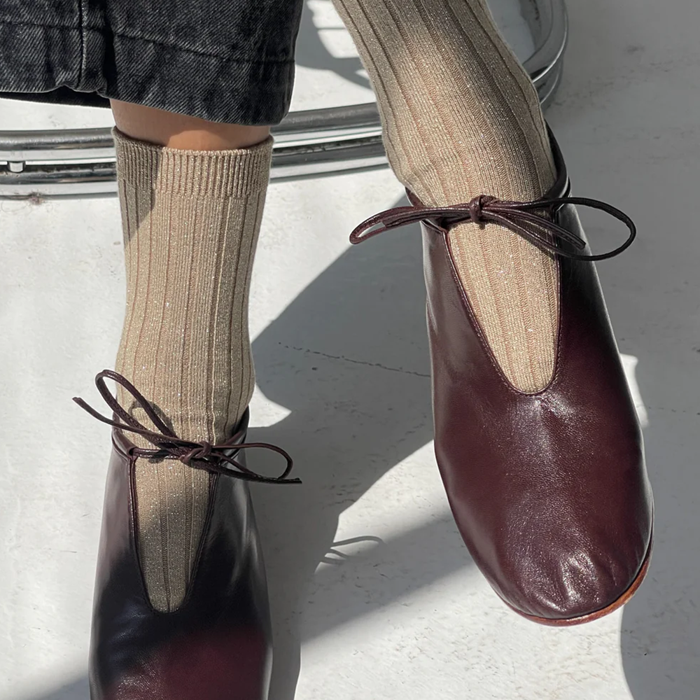 The OG sock from Le Bon Shoppe. Classically ribbed, perfect height, in a super soft and supple modal blend yarn with a bit of sparkle!
