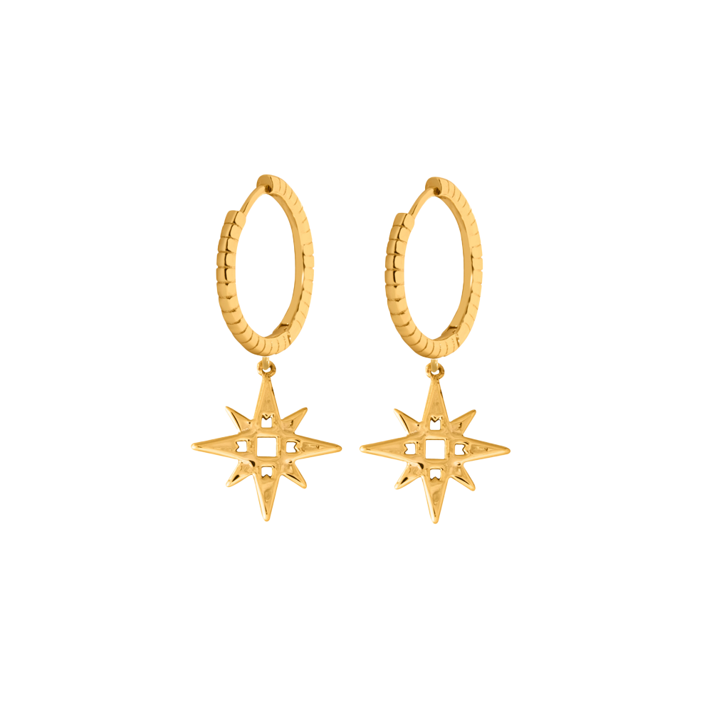 Lindi Kingi Earrings Signature Star with Engraved Hoop Gold
