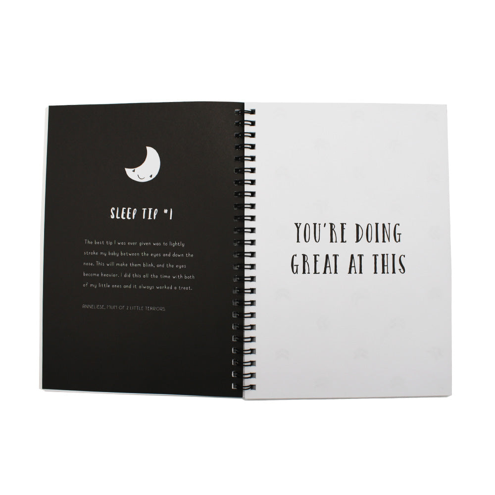 Simply the BEST black and white gift for a new mum. Packed full of amazing sleep tips from real Mums, lots of bold black and white pattern pages for baby and plenty of space to record all the sleep times, feed times and fun times.