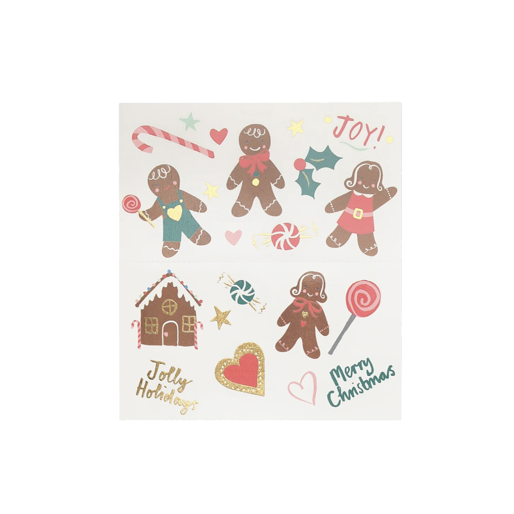 Temporary tattoos are the perfect Christmas accessory and are ideal as stocking fillers, party favours and to pop into party bags too. They're also an excellent Christmas party activity that kids will love. This pack features on-trend gingerbread people and houses, candy canes and happy festive messages.