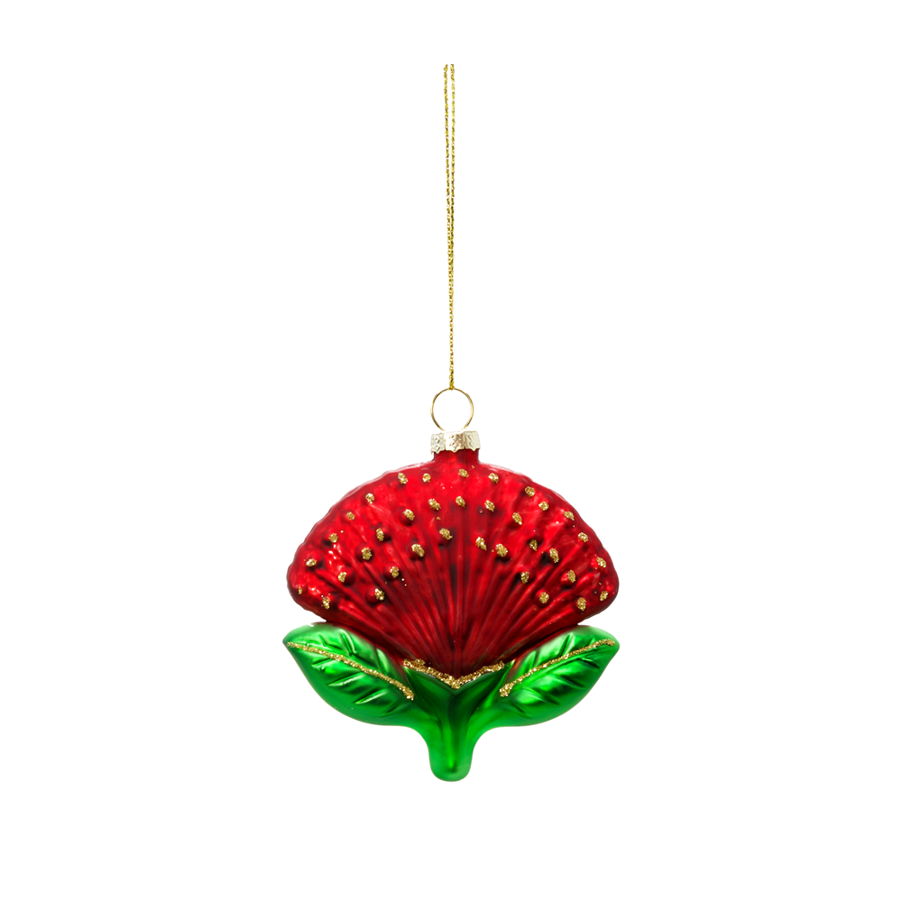 Moana Road Glass Christmas Tree Decoration Pōhutukawa