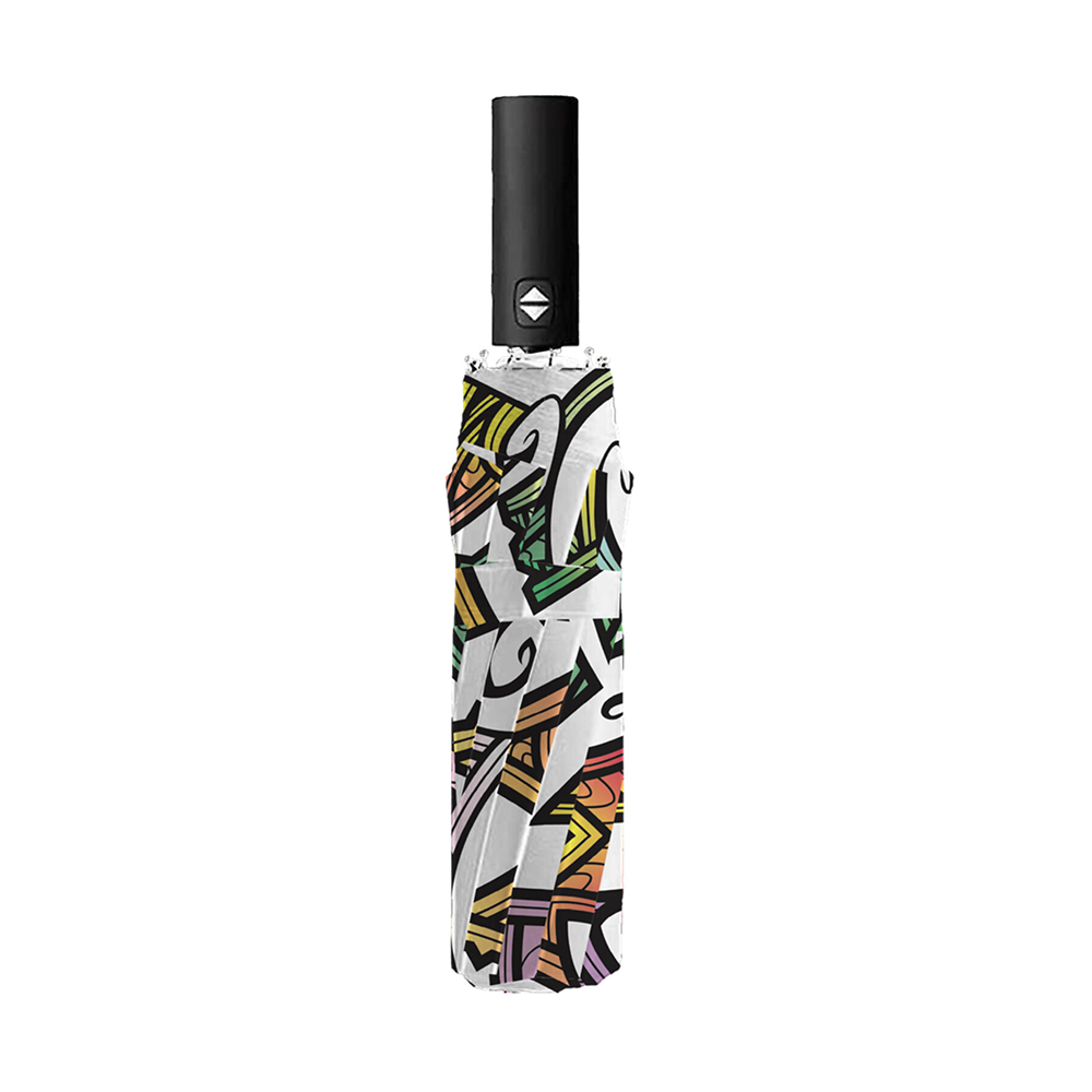The Niwa Umbrella features the 'Niwa' design by Māori artist Miriama Grace-Smith.