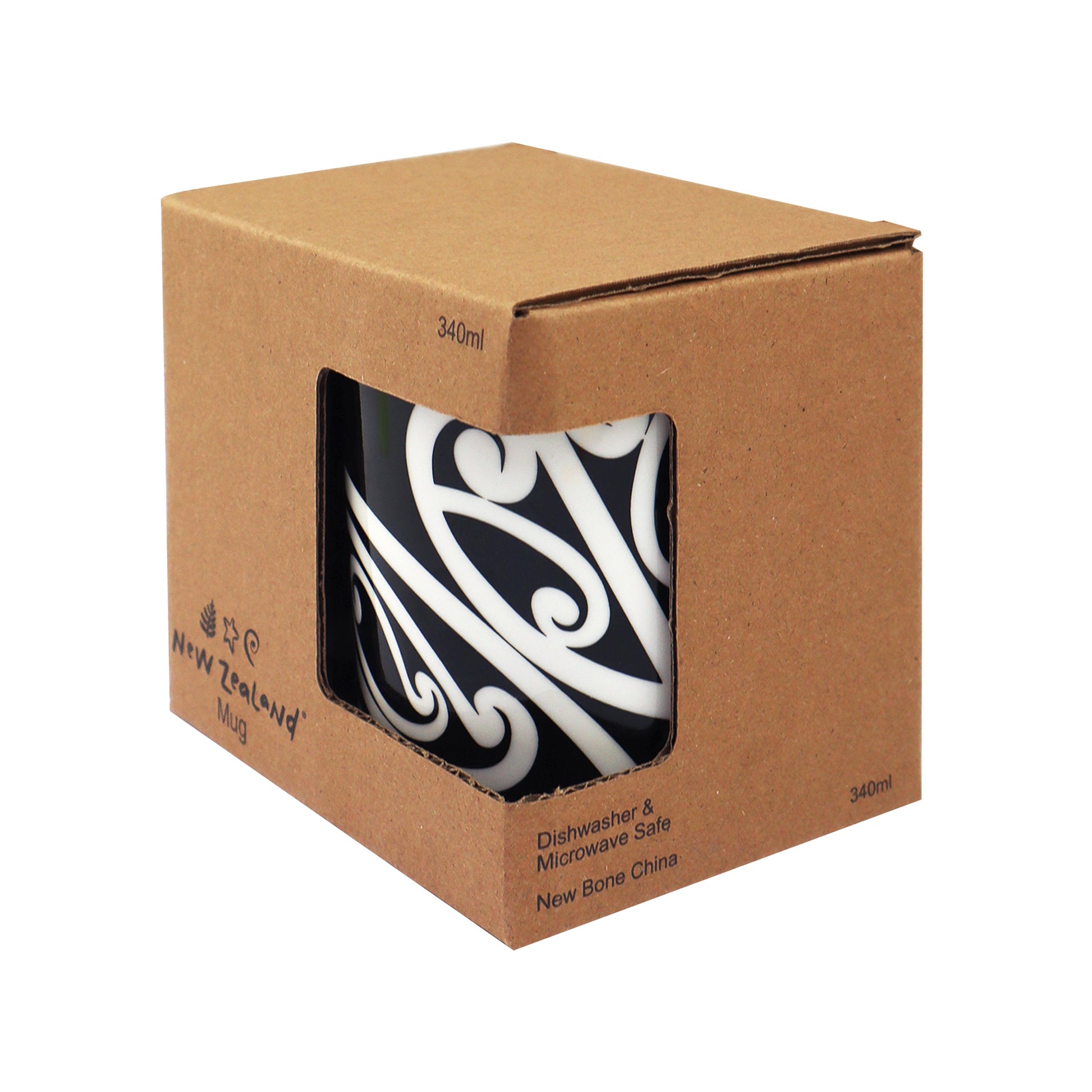 Celebrate Aotearoa with every sip. Crafted from fine new bone china, these mugs feature a traditional black and white Maori pattern.