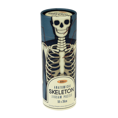 Assemble a skeleton from ribs to radius, sternum to sacrum, with this 300 piece puzzle, presented in a cardboard tube.