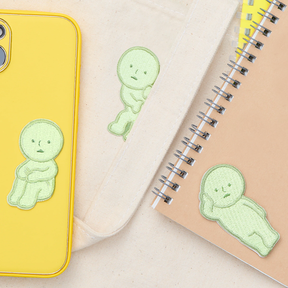 The Smiski Embroidery Sticker Patches come in three different poses from the Series 1 mini figure lineup: Smiski Lounging, Smiski Hugging Knees and Smiski Peeking.