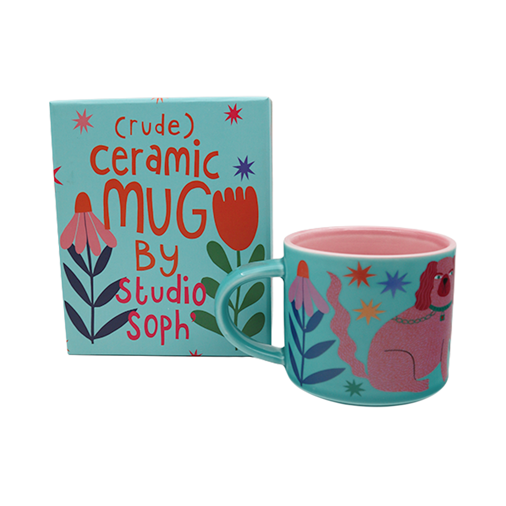This lovely mug features two dogs, flowers and stars on the outside, as well as some cheeky wording on the inside. Illustrated by NZ artist Studio Soph.