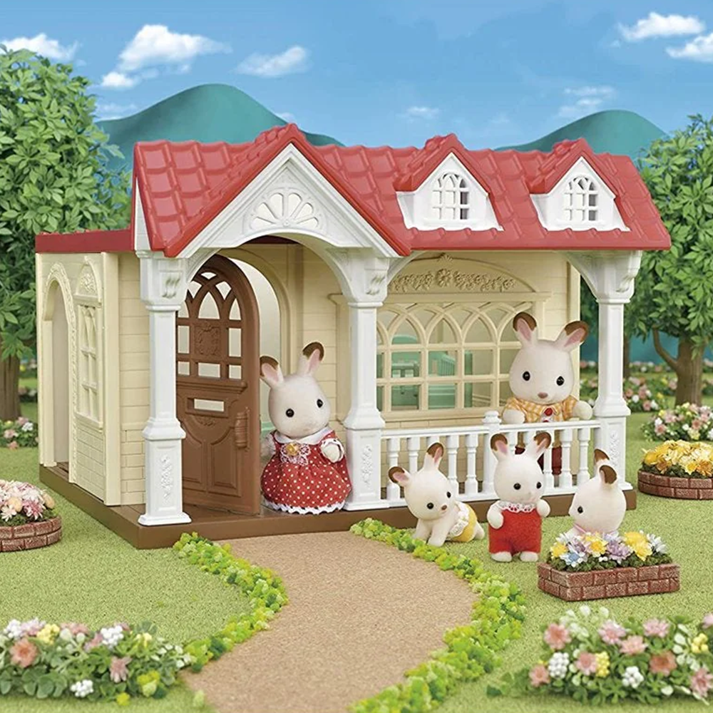 Sweet Raspberry Home is a one-storey house with an amazing entrance terrace and red roof. It comes with Chocolate Rabbit Baby and baby furniture, so you can play with this set right away. Sweet Raspberry Home is a one-storey house with an amazing entrance terrace. With its large interior and high ceiling, hands can fit inside for easy play. The set comes with Chocolate Rabbit Baby and a baby bed with a slide. Combine with Red Roof Cosy Cottage, Red Roof Country Home or Red Roof Tower Home (sold separately) to create a huge house. Or play with other figures and furniture for even more fun (sold separately).