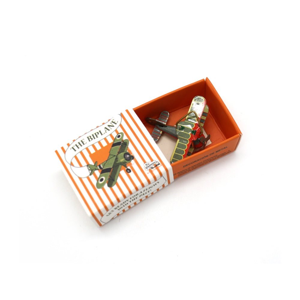 Mini tin replicas of historical planes in a cute illustrated gift box.