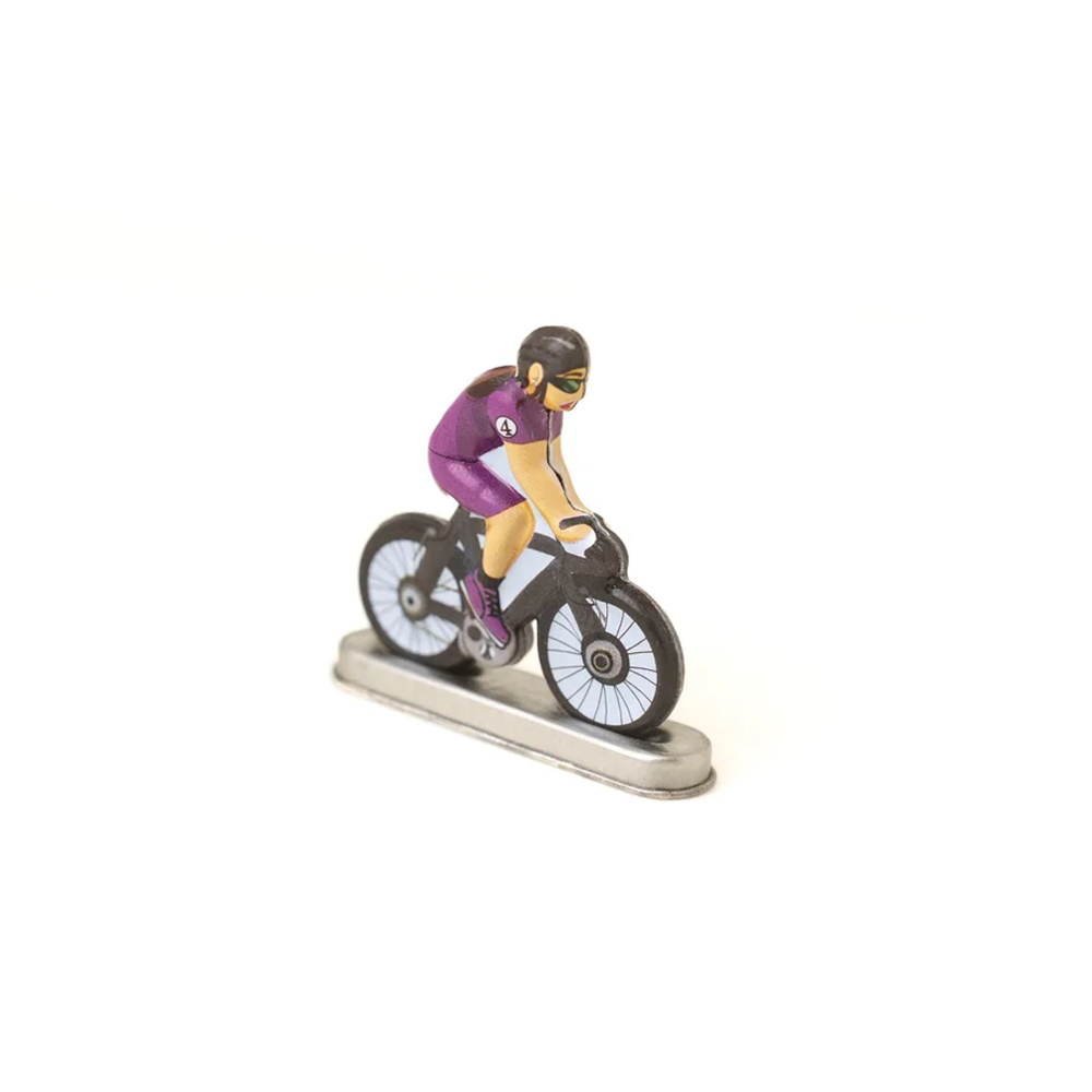 Tin Toy Cyclist Mini Bicycle in cute match box packaging. Hand-painted adding some retro cycling charm to your shelves, window arrangements, or gift boxes.
