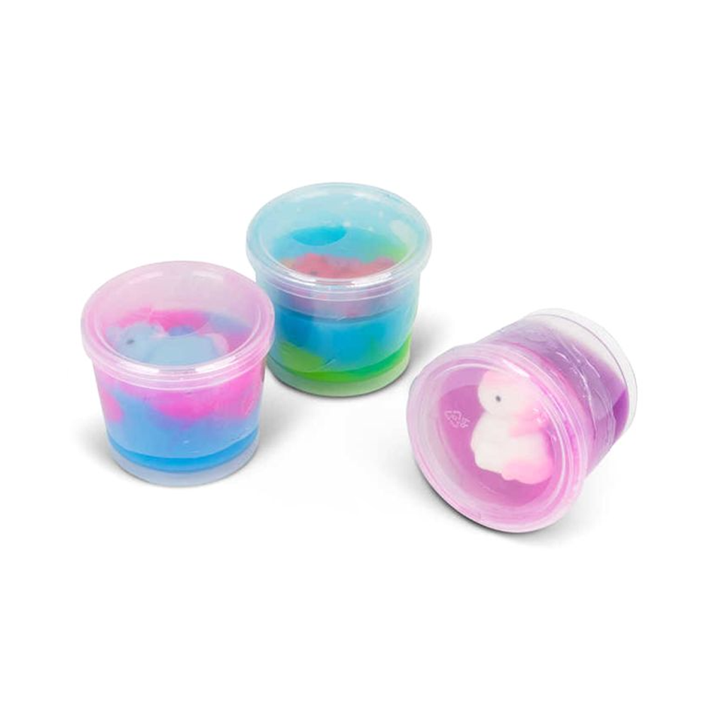 Slime tub with squishy mochi unicorn hidden inside for extra sensory delight.